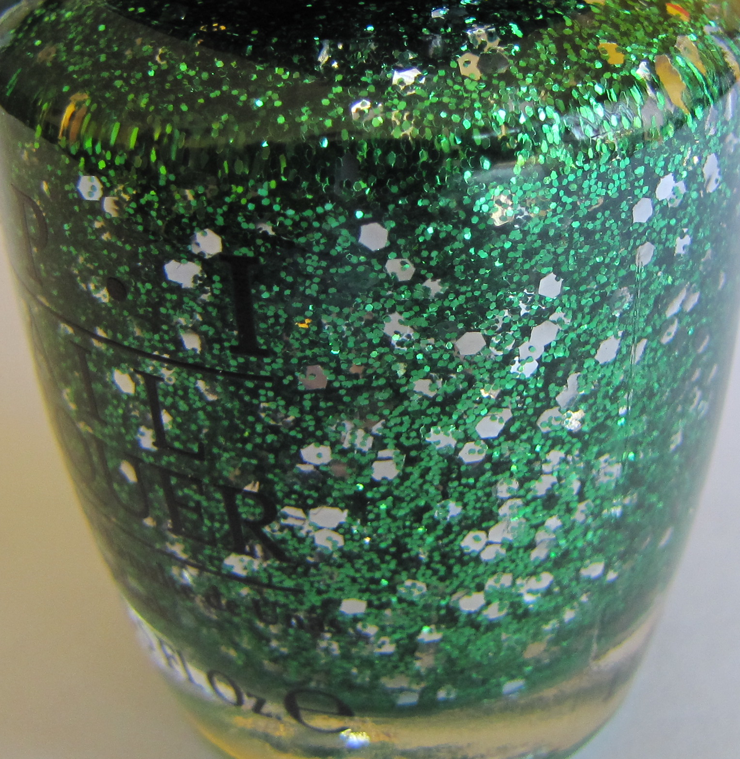 Fresh Frog of Bel Air, grass green glitter and large silver hexagonal glitter in a clear base -